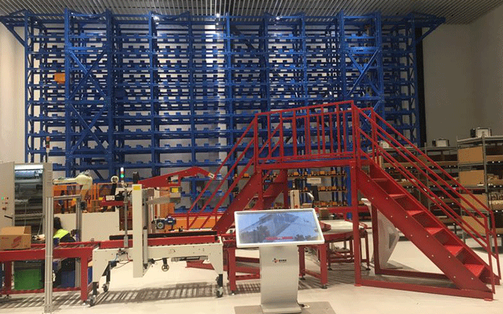 智能立體倉(cāng)庫(kù)貨架通常是組合式鋼結(jié)構(gòu)的建筑物或結(jié)構(gòu)體,貨架內(nèi)是標(biāo)準(zhǔn)尺寸的貨位空間,巷道堆垛起重機(jī)是整個(gè)自動(dòng)化立體倉(cāng)庫(kù)的核心設(shè)備,通過手動(dòng)操作,半自動(dòng)操作或全自動(dòng)操作,穿行于巷道之間的巷道中,出入庫(kù)口利用各種輸送機(jī)或AGV/RGV等自行運(yùn)動(dòng)小車對(duì)接巷道堆垛機(jī),實(shí)現(xiàn)把貨物從一處搬運(yùn)到另一處,完成存、取貨的工作。