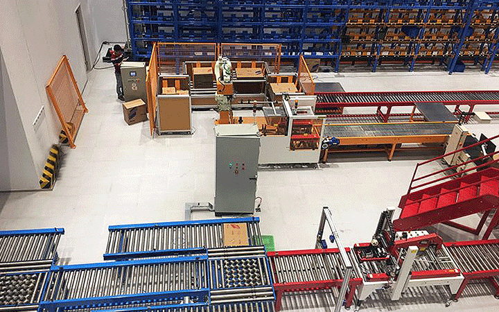 輸送裝置按貨物重量可分為重型和輕型兩種。重型輸送分揀線一般完成托盤類重型貨物的輸送,此類設(shè)備有重型滾筒機(jī)、鏈條機(jī)、頂升移載機(jī)、拆碼盤機(jī)、提升機(jī)、RGV、AGV等。輕型輸送分揀線主要用于輸送重量較輕的箱類、盒類貨物,在物流配送型的物 流系統(tǒng)中大量運(yùn)用,主要有滾筒機(jī)、皮帶機(jī)、提升機(jī)、定時(shí)功能移載等。
