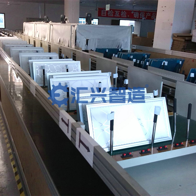 傳統(tǒng)的側(cè)面發(fā)光的LED面板燈只需將LED燈條用雙面膠固定于燈盤側(cè)面,現(xiàn)在越來(lái)越多企業(yè)選擇底部發(fā)光或者說(shuō)正面發(fā)光的設(shè)計(jì),而這種設(shè)計(jì)需要將LED燈條通過(guò)膠水將其粘接固定于燈盤底部,有些工廠貼4條,6條,8條,或者更多,取決于每個(gè)公司產(chǎn)品的設(shè)計(jì),無(wú)論何種設(shè)計(jì),都涉及到打膠貼燈條的工序,這一工序如果通過(guò)人工來(lái)實(shí)現(xiàn),會(huì)出現(xiàn)打膠不均勻,速度慢,無(wú)法達(dá)到批量化生產(chǎn)的要求,耗費(fèi)較高人力成本的同時(shí),打膠粘接質(zhì)量也無(wú)法滿足產(chǎn)品質(zhì)量要求,所以引入自動(dòng)點(diǎn)膠機(jī)勢(shì)在必行。匯興智造根據(jù)市場(chǎng)需求,研發(fā)設(shè)計(jì)了此款LED面板燈多頭自動(dòng)點(diǎn)膠機(jī)。