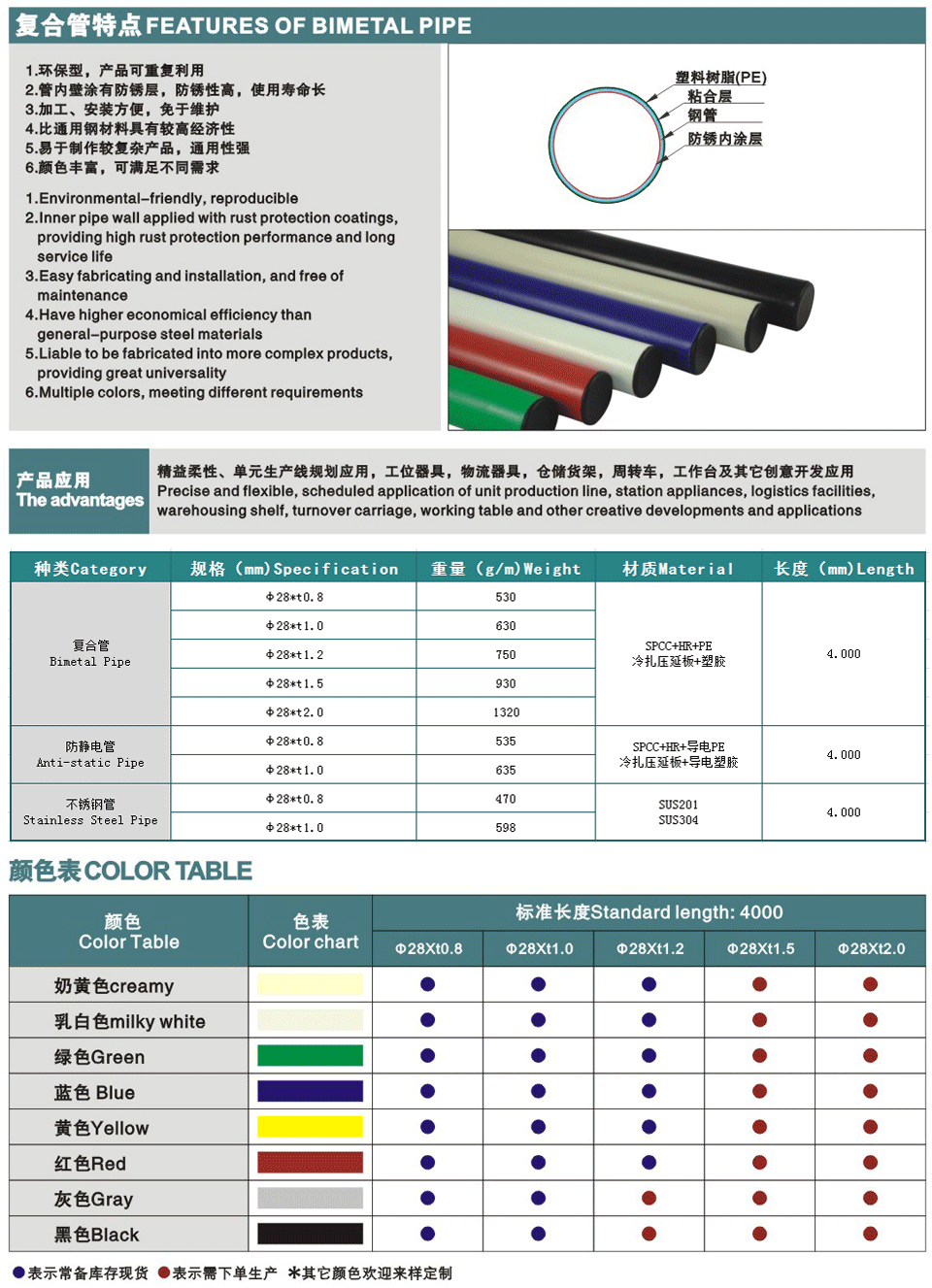精益管,我們也經(jīng)常稱之為線棒、物流管、復(fù)合管等。是一種鍍鋅的鋼管并帶有塑料樹脂涂層。標準的精益管直徑一般是28mm,鋼管的壁厚一般在0.8mm-1.5mm之間,顏色主要為米黃色,白色,黑色,綠色等。塑膠的材質(zhì)主要以PE為主。