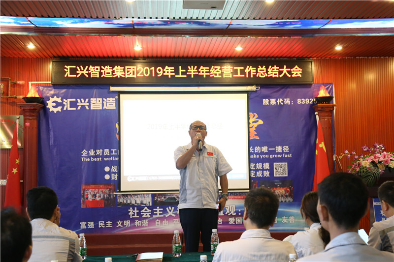 大會最后一項議程由董事長鐘輝作2019年上半年經(jīng)營工作總結(jié)以及2019下半年工作部署。鐘董圍繞公司的軟實力打造和硬實力建設(shè),要求全體干部和職工在下半年要以只爭朝夕的緊迫感和使命感,狠抓落實“258行動計劃”?!緟R興智造258行動計劃:2:堅持企業(yè)硬實力和品牌軟實力兩個基本點,堅持設(shè)備智造和配件銷售兩條腿走路,堅持國內(nèi)市場和國外市場兩只手發(fā)力;5:主動做好個人的心態(tài)管理、目標(biāo)管理、時間管理、學(xué)習(xí)管理、行動管理等五項管理;8:主動發(fā)揚“5+2”、“白+黑”的艱苦奮斗精神,每一位員工都要堅守崗位,既要出工,也要出活,特別是領(lǐng)導(dǎo)干部要帶頭利用晚上1小時進行學(xué)習(xí)和總結(jié),確保完成2019年集團智能制造板塊2.58億元的經(jīng)營業(yè)績目標(biāo)!】