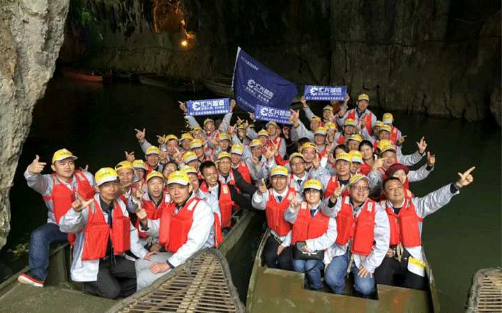 旅途第二站:仙橋地下河。仙橋地下河由兩段暗河和中間一段明河組成,自西向東,河面平靜。暗河內(nèi)鐘乳石、石灰?guī)r形態(tài)各異,有的像水母;有的像龍爪;有的像觀音;有的像關(guān)公,三分形象,七分想象,很是有趣,加上彩燈,地下河更是被妝點(diǎn)得美輪美奐。美好的事物總是能引發(fā)人類對(duì)美好未來(lái)的憧憬,“夢(mèng)想之旅”的團(tuán)隊(duì)成員們坐在船上,激情萬(wàn)分地大喊:“匯興智造是我們的船,而我們?cè)诖稀!蔽覀儗P(yáng)帆啟航,來(lái)一場(chǎng)創(chuàng)世之旅,去尋找那屬于匯興人的桃源之地。