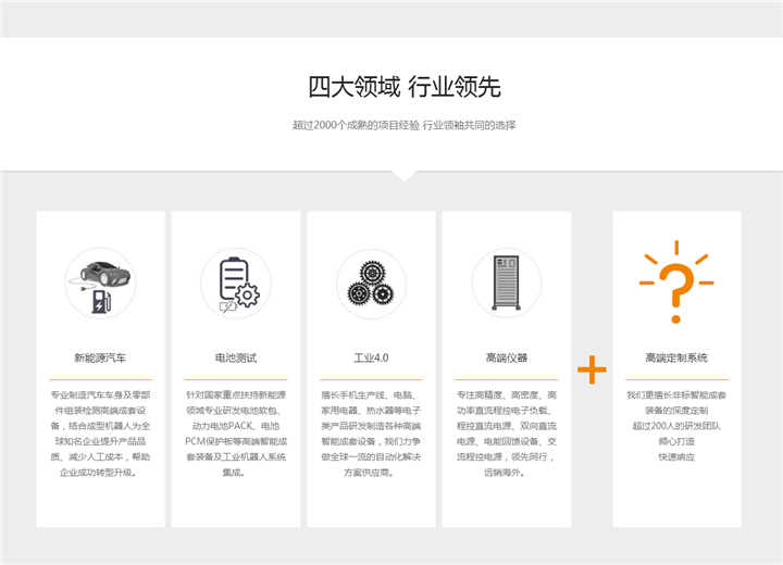 針對國家重點扶持新能源領(lǐng)域?qū)I(yè)研發(fā)電池軟包、動力電池PACK、電池PCM保護(hù)板等高端智能成套裝備及工業(yè)機(jī)器人系統(tǒng)集成。