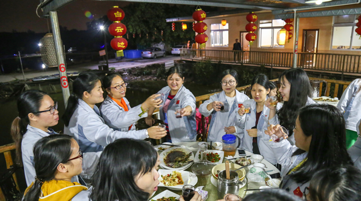 參觀結(jié)束后,女同胞們來到了風(fēng)景優(yōu)美的農(nóng)莊享受輕松、愉快的聚會。美女如云,美酒佳肴,歡聲笑語,歡樂開懷。