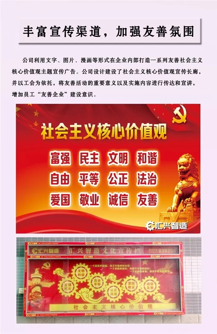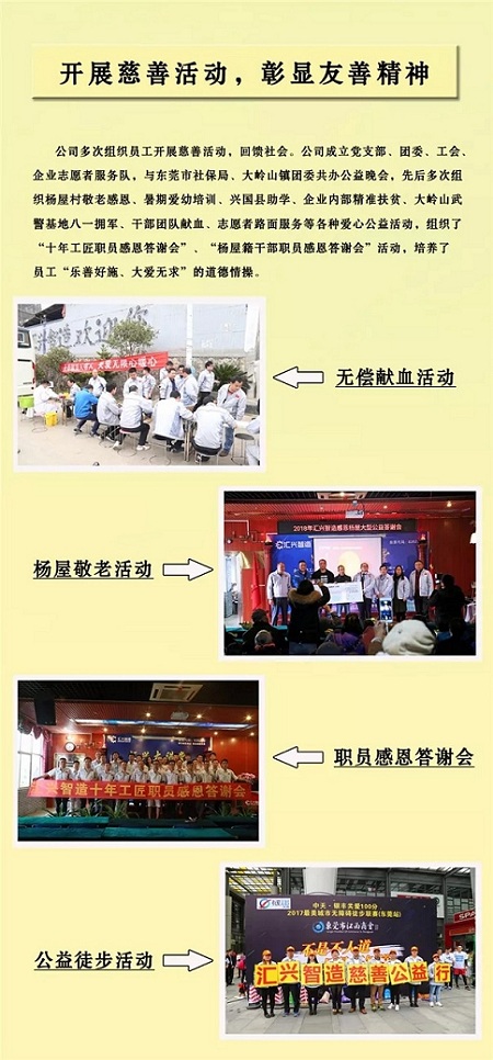 如果信念有顏色,那一定是中國紅!無償獻(xiàn)血是無私奉獻(xiàn)、救死扶傷的崇高行為,是我國血液事業(yè)發(fā)展的強(qiáng)大助力和保障。匯興智造作為東莞市首批10家“友善企業(yè)”之一,始終在堅(jiān)持以人為本,注重人文關(guān)懷的同時(shí),致力于將“友善”的價(jià)值觀、理念融入公司日?;顒又?,通過快樂工作,幸福生活的獨(dú)具特色的“友善文化”和“一個(gè)行業(yè) 一個(gè)家庭 一所學(xué)校 一支軍隊(duì)”的人文理念,把社會主義核心價(jià)值觀融入到員工思想教育工作之中;夯實(shí)“友善企業(yè)”基礎(chǔ)、打造“友善環(huán)境”陣地、構(gòu)建友善勞動關(guān)系。在點(diǎn)點(diǎn)滴滴中融合、滲透,全方位落地生根,營造和諧友善氛圍和人文環(huán)境,積極提升員工的幸福感和自豪感,讓員工在公司平臺上充分展現(xiàn)自我,實(shí)現(xiàn)自身價(jià)值,創(chuàng)享更加美好的生活。
