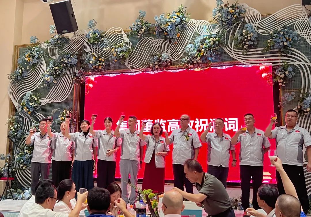 2023年8月10日,在匯興智能設(shè)備制造增資擴產(chǎn)項目開工奠基儀式圓滿成功后,與會領(lǐng)導(dǎo)嘉賓一同前往答謝宴現(xiàn)場,齊聚一堂、共