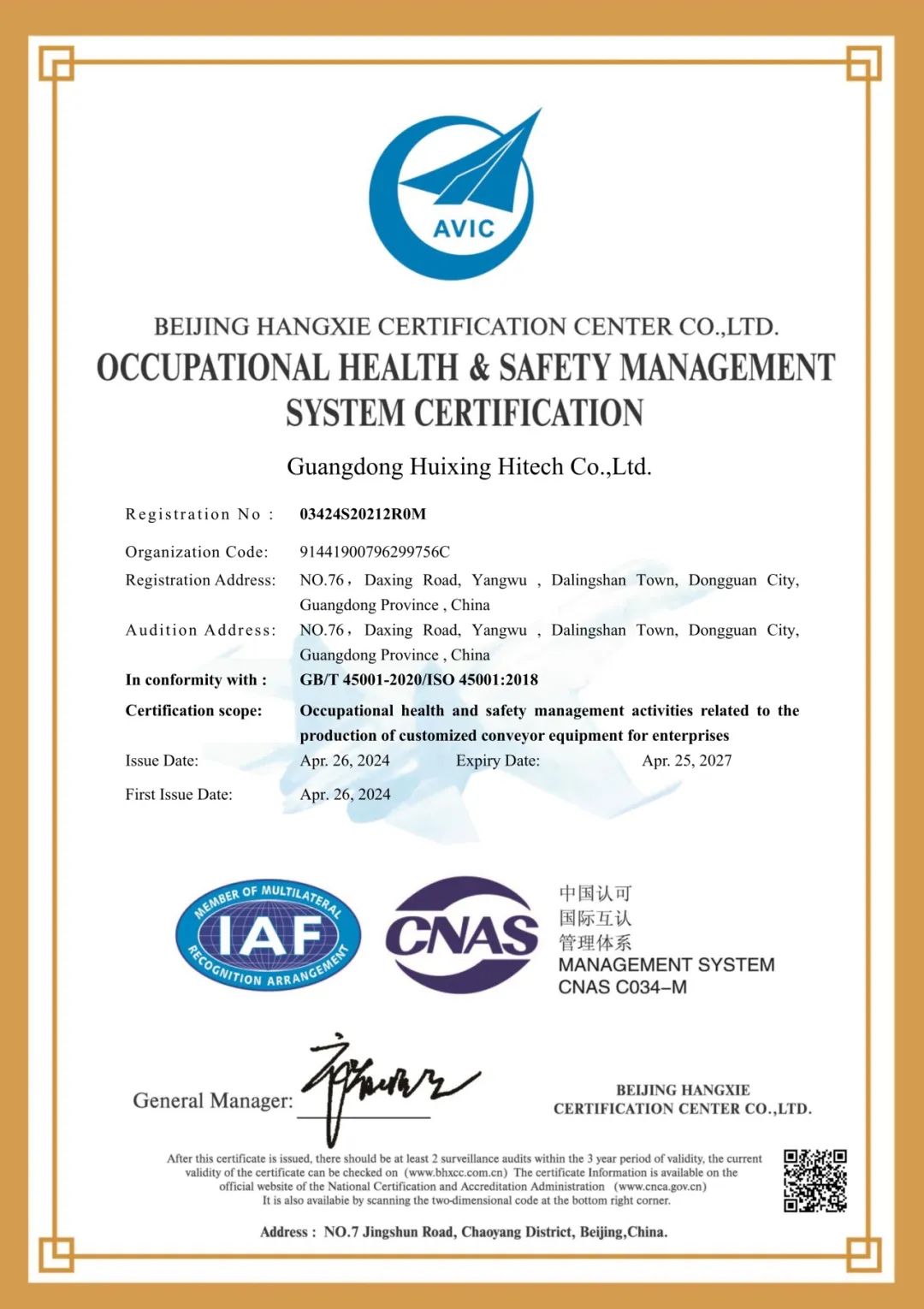“做受尊敬好人,造受尊敬的產(chǎn)品,辦受尊敬的企業(yè),建受尊敬的平臺(tái)”是匯興智造的企業(yè)使命。4月7-9日,廣東匯興精工智造股份有限公司通過(guò)北京航協(xié)認(rèn)證中心審核組進(jìn)行為期3天的ISO14001環(huán)境管理體系和ISO45001職業(yè)健康安全管理體系認(rèn)證,經(jīng)過(guò)主管機(jī)構(gòu)全面、嚴(yán)格、細(xì)致的審核,公司各項(xiàng)審核項(xiàng)目均已達(dá)到ISO14001環(huán)境管理體系和ISO45001職業(yè)健康安全管理體系標(biāo)準(zhǔn)要求,并于2024年4月26日正式獲得ISO14001環(huán)境管理體系和ISO45001職業(yè)健康安全管理體系認(rèn)證證書。