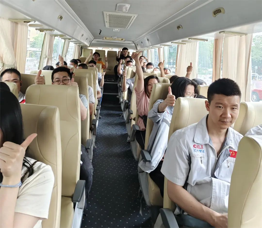 一大早,總部未出差的小伙伴們就精神抖擻,排隊(duì)乘坐兩輛專屬班車趕往目的地。